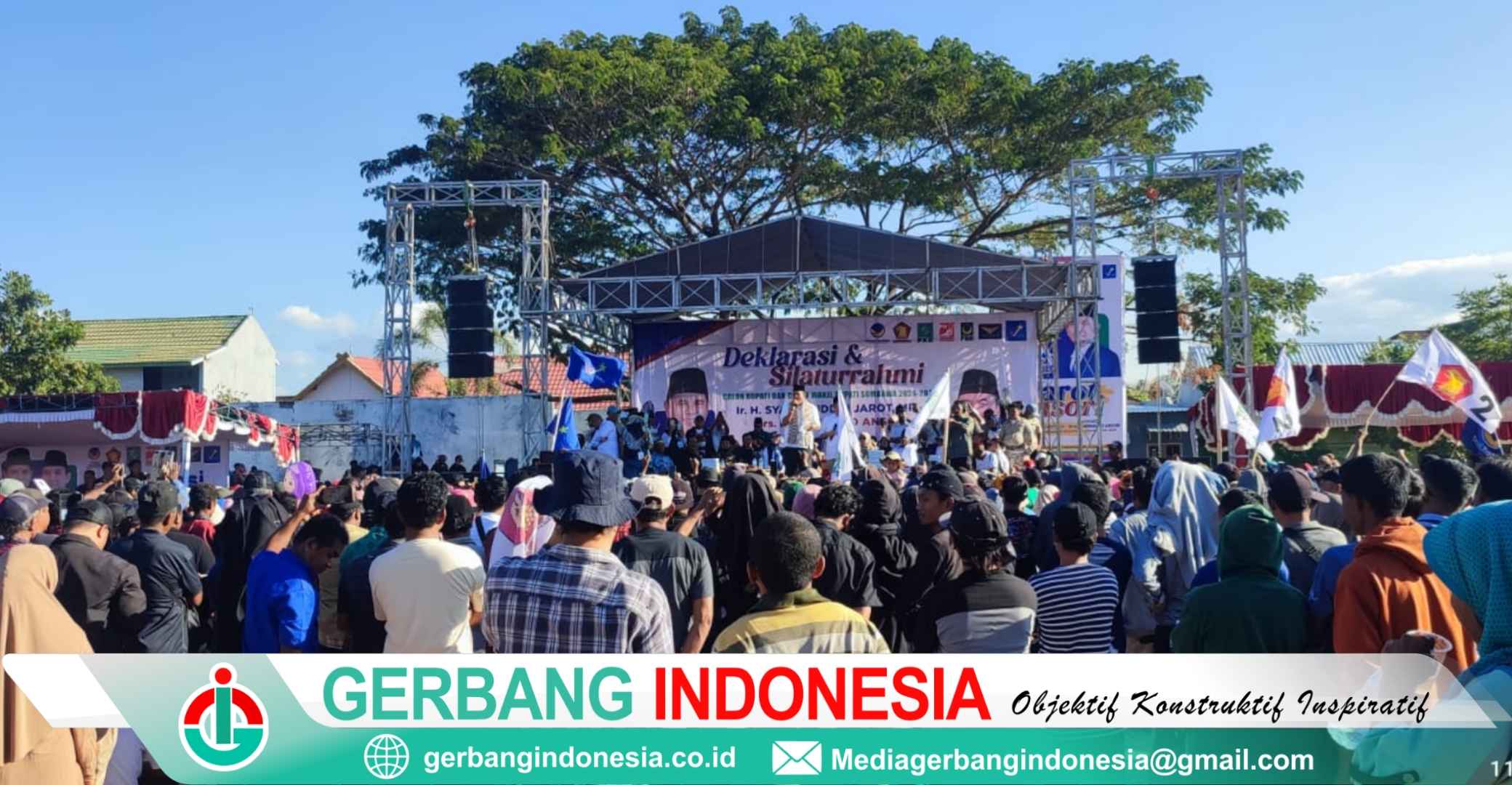 GerbangIndonesia, Sumbawa – Deklarasi Bakal Calon Bupati dan Bakal Calon Wakil Bupati Jarot – Ansori dibanjiri ribuan massa pendukung dari 24 kecamatan di Kabupaten Sumbawa bertempat di Taman Kerato, Minggu (11/08/2024).