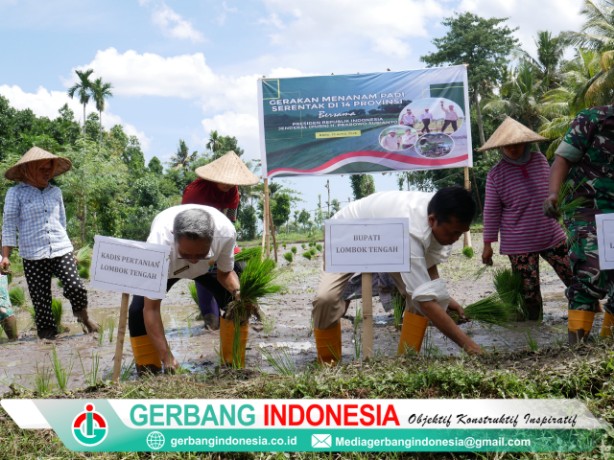 Gerbang Indonesia, Lombok Tengah – Pemerintah Kabupaten Lombok Tengah menyatakan komitmennya dalam mendukung program nasional percepatan swasembada pangan melalui partisipasi aktif dalam Gerakan Tanam Padi Serentak yang digelar oleh Kementerian Pertanian Republik Indonesia di Kecamatan Pringgarata, tepatnya di lahan milik Kelompok Tani Sarian Ilir. (23/4).