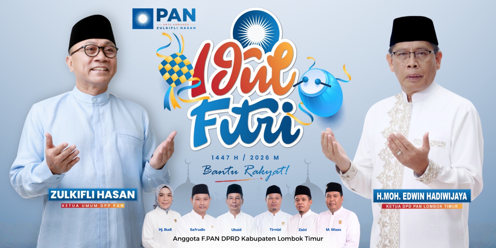 Ketua Umum DPP PAN, Zulkifli Hasan, bersama Ketua DPD PAN Lombok Timur, H. Moh. Edwin Hadiwijaya, menyampaikan harapan agar Idul Fitri tidak hanya dimaknai sebagai perayaan, tetapi juga sebagai momentum untuk saling membantu dan memperkuat solidaritas antarwarga.