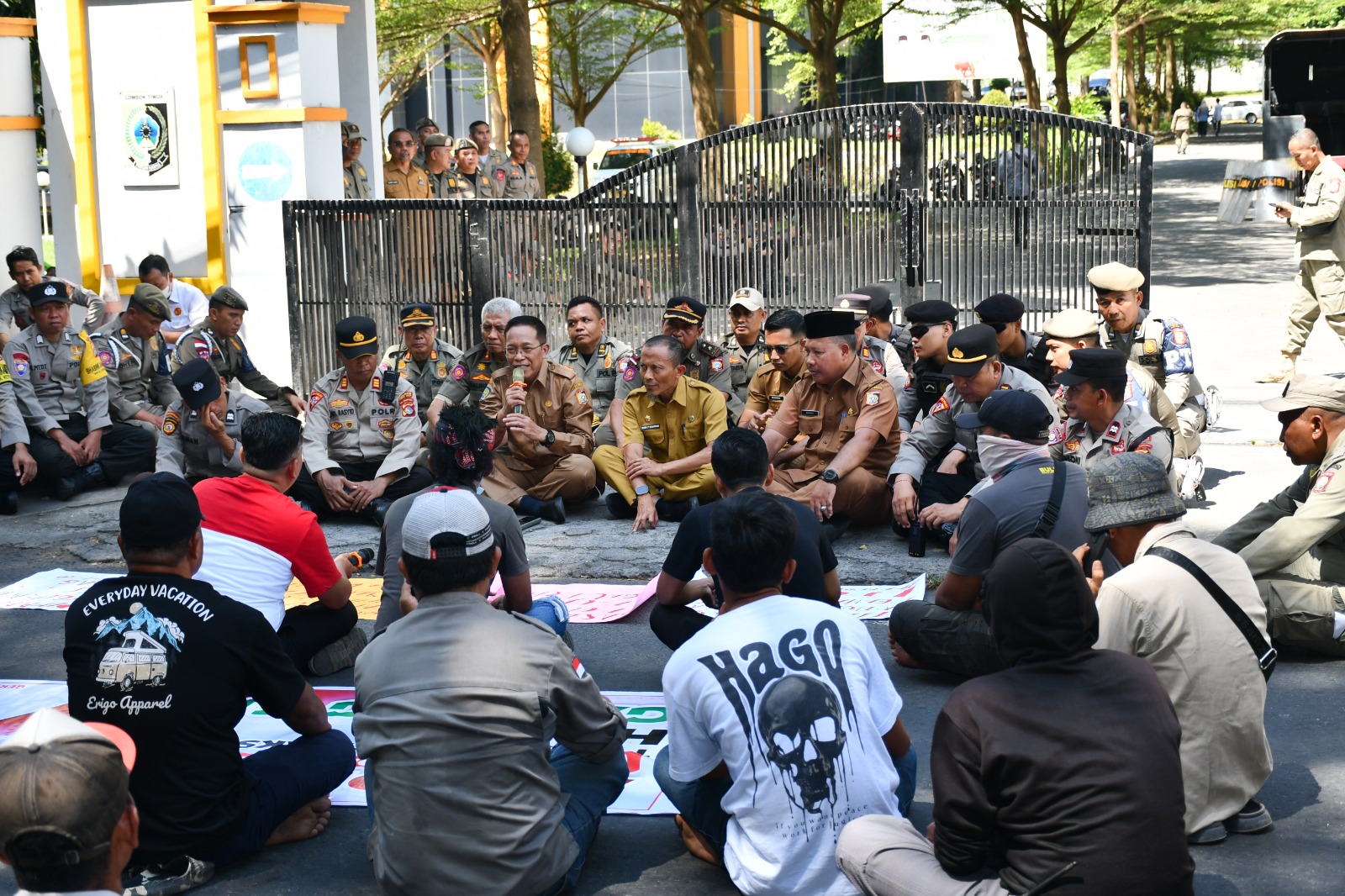 Aksi yang berlangsung di depan Kantor Bupati tersebut berjalan aman dan tertib hingga selesai.(dan)